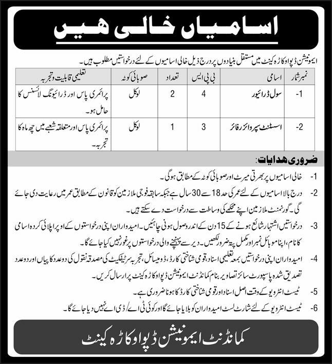 Vacancies Details Of Ammunition Depot Okara Cantt Jobs 2025