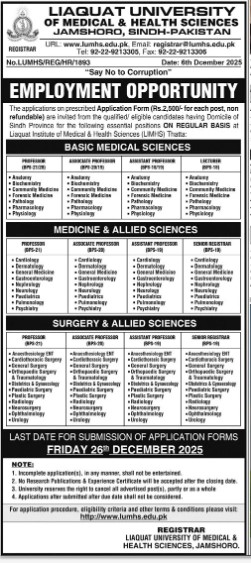 The last date to apply for this job is 26th December 2025.University Jobs 2025 Advertisement