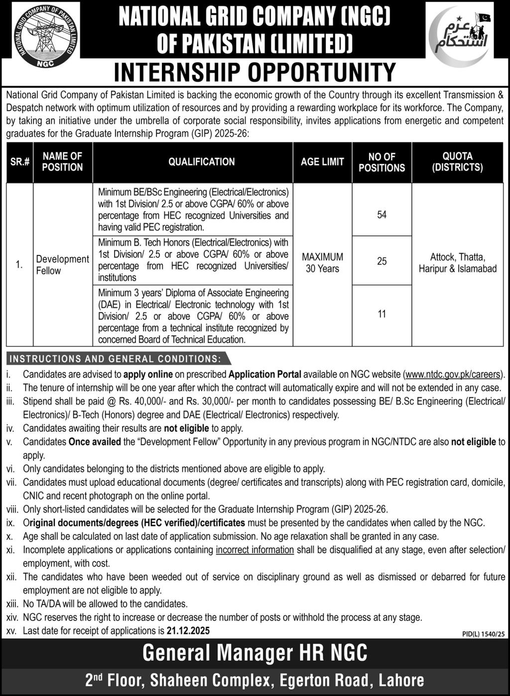 Candidates, if you are seeking National Grid Company of Pakistan Jobs 2025, Apply Online. Then it would help if you tried to complete the National Grid Company of Pakistan Jobs because here you can easily apply for this vacancy: Development Fellow.