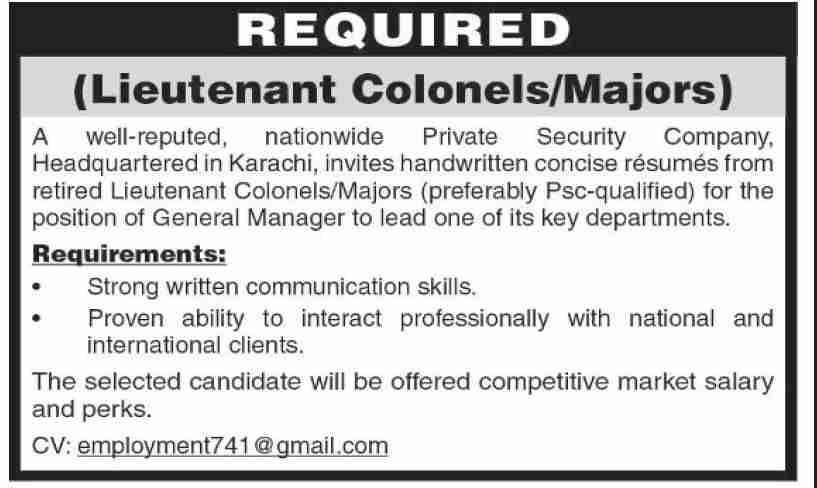 Candidates, if you are seeking Nationwide Private Security Company Jobs 2025, Apply Online yes. Then it would help if you tried to complete these Nationwide Private Security Company Jobs because here you can easily apply for this vacancy: Lieutenant Colonels/Majors.