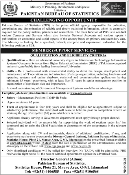 Candidates, if you are seeking Pakistan Bureau of Statistics Jobs 2025 in Islamabad, Apply Online yes. Then it would help if you tried to complete these Pakistan Bureau of Statistics Jobs because here you can easily apply for these vacancies: Member Support Services.