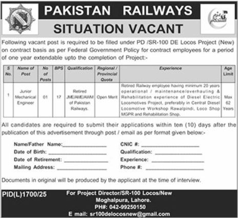 The last date to apply for this job is within 10 days.Pakistan Railways Jobs 2025 Advertisement